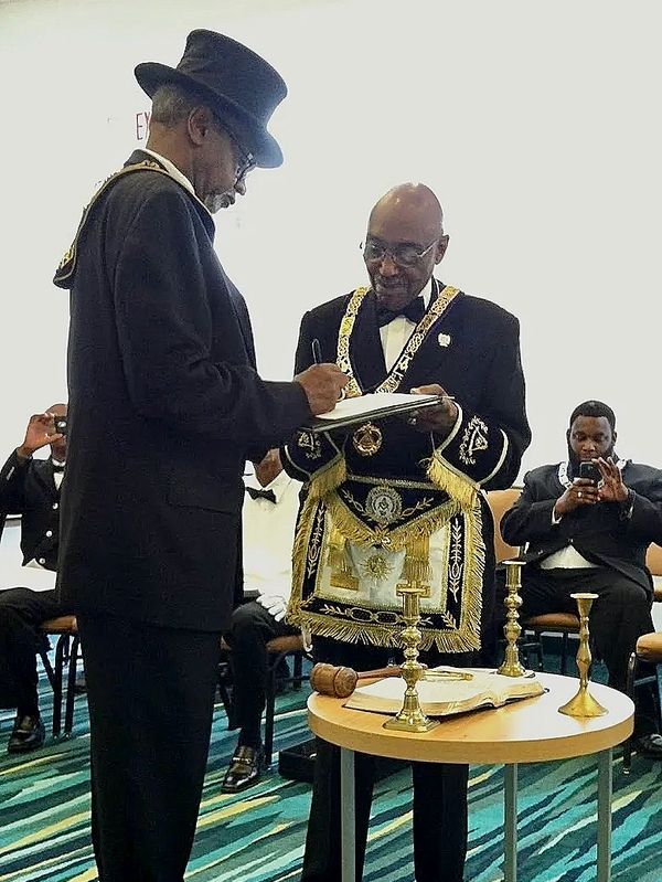 Brother Gabriel M. Kendrick Founding Member Grand Lodge Treasurer, Past Treasurer of Moses#57, Present Junior Warden Moses 57, Captain of the Host of Ephraim Chapter #3 Sir Knight of Knights Templar Dedicated member since 2006